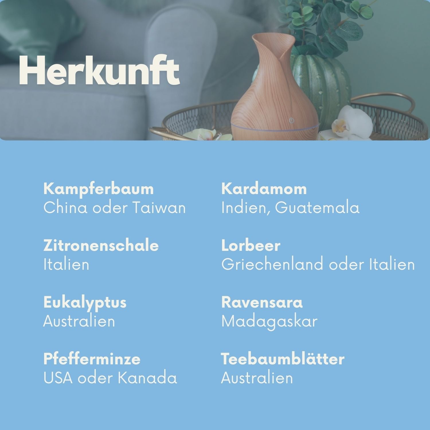 - Diffuser: Für einen frischen, klaren Raumduft.